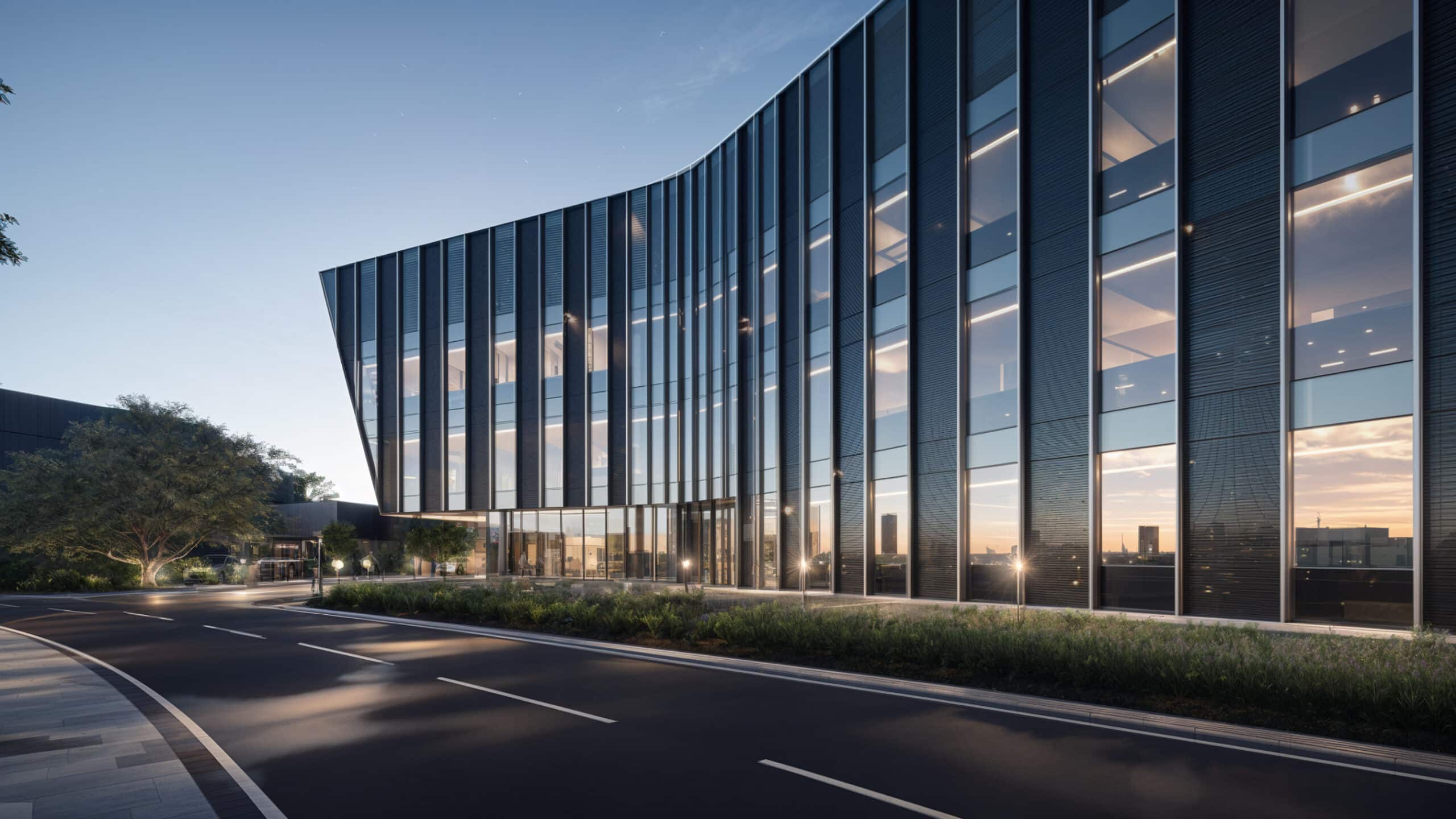 Calcinotto is providing structural solutions to achieve the ambitious curved design while ensuring adaptability for future tenants. The structure incorporates large open spans, supporting flexible laboratory layouts and long-term resilience. Civil engineering input includes site infrastructure, drainage, and external levels, integrating the new facility into its landscaped setting.